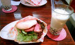 母絶賛のベーグル屋さんで、ローストビーフベーグルとタピオカジュースで夕飯。